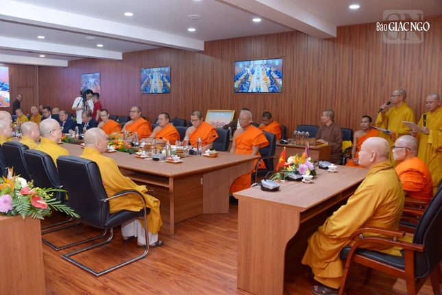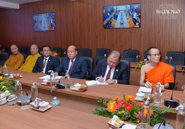 Đón tiếp đoàn có Hòa thượng Thích Thiện Nhơn, Chủ tịch Hội đồng Trị sự, Trưởng ban Tăng sự Trung ương; Chư vị Phó Chủ tịch Thường trực Hội đồng Trị sự: Hòa thượng Thích Thiện Pháp, Hòa thượng Thích Thanh Nhiễu; Thượng tọa Thích Đức Thiện, Phó Chủ tịch kiêm Tổng Thư ký Hội đồng Trị sự, Trưởng ban Phật giáo Quốc tế Trung ương, cùng chư vị Phó Chủ tịch, lãnh đạo Văn phòng I, II Trung ương; Ban Phật giáo Quốc tế Trung ương GHPGVN.