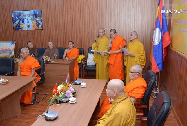 Phát biểu chào mừng phái đoàn, Hòa thượng Thích Thiện Nhơn đã ôn lại những dấu son đánh dấu tình hữu nghị giữa Phật giáo Việt Nam và Liên minh Phật giáo Lào, như: trao đổi giao lưu văn hóa, tổ chức hội thảo, triển lãm, trao tặng tạp chí nghiên cứu Phật giáo, hỗ trợ chư Tăng của Liên minh Phật giáo Lào sang học tại Học viện Phật giáo VN tại Hà Nội, Huế cũng như tại TP.HCM.