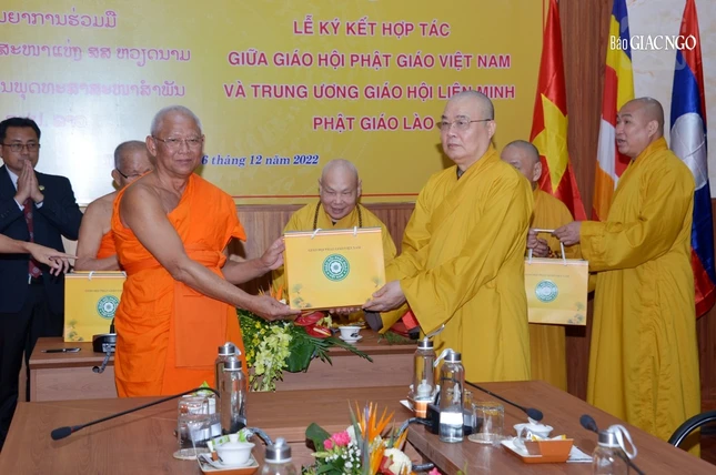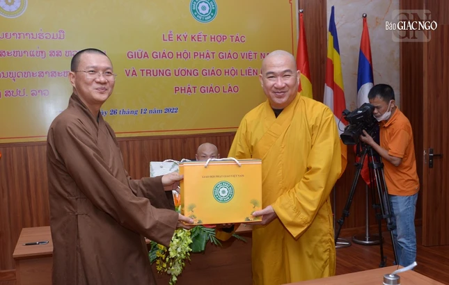Dịp này, Hòa thượng Thích Thiện Nhơn đại diện cho GHPGVN và Hòa thượng Maha Bounma Sommaphom, đại diện Liên minh Phật giáo Lào đã ký kết bản ghi nhớ hợp tác, cụ thể, thực chất, hiệu quả. Theo đó, bản ghi nhớ hợp tác này kế thừa và phát huy những kết quả tốt đẹp đã đạt được trong các hoạt động hợp tác, giao lưu giữa GHPGVN và Liên minh Phật giáo Lào ký kết năm 2005.