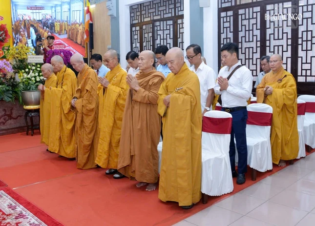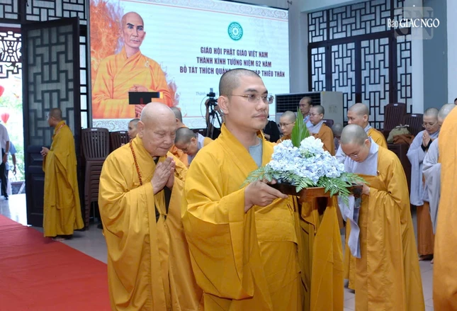 Tiếp đó, với sự dẫn lễ của Trưởng lão Hòa thượng Thích Huệ Minh, Thành viên Hội đồng Chứng minh GHPGVN, chư tôn giáo phẩm Hội đồng Chứng minh, Hội đồng Trị sự, Ban Trị sự TP.HCM và các tỉnh thành thành, đại diện các cơ quan đã thành kính dâng, chí thành dâng hương tưởng niệm Giác linh Bồ-tát Thích Quảng Đức và tri ân công đức to lớn của Bồ-tát đã đốt thân mình làm ngọn đèn soi sáng nẻo vô minh, cho đạo pháp trường tồn; cùng tưởng niệm chư vị Thánh tử vì đạo.