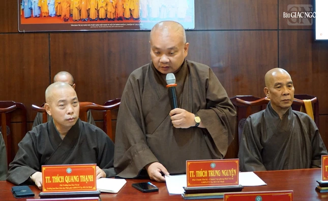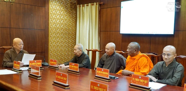 Hòa thượng Thích Lệ Trang, Phó Chủ tịch Hội đồng Trị sự, Trưởng ban Trị sự GHPGVN TP.HCM chủ trì buổi họp.