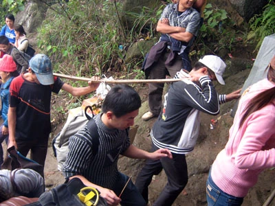 Dòng người chen chúc trên dốc đá