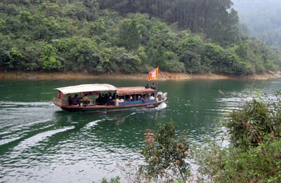 Để đủ sức leo núi nhiều người lên thuyền vào tận chân đèo, giá vé cho mỗi chuyến đi 5.000 đồng/lượt người