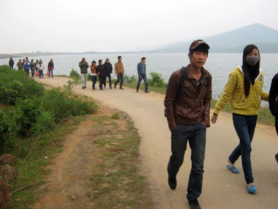 Đường lên chùa Hương Tích những ngày này tràn ngập sắc xuân. Trong cái lạnh phảng phất, hàng chục ngàn lượt bà con phật tử, người dân ở khắp các vùng miền, hành hương về Hương Tích tự.