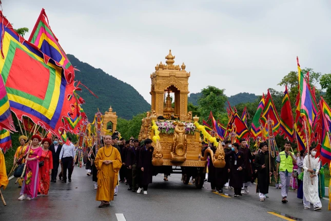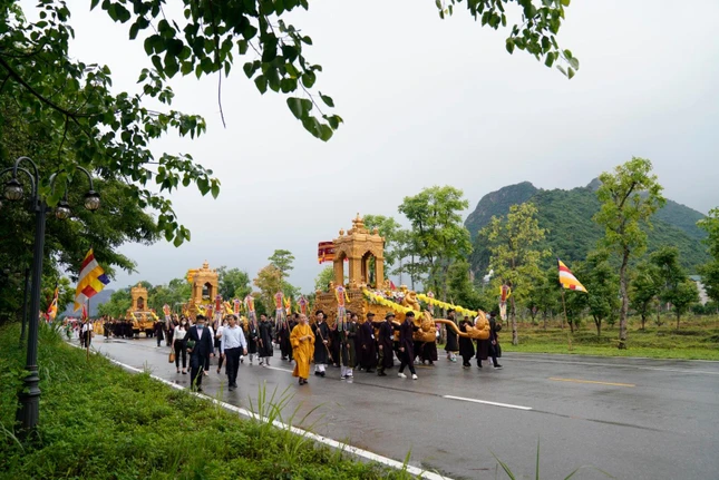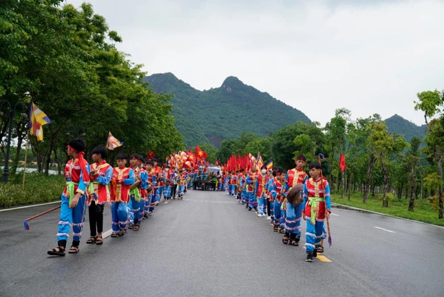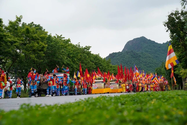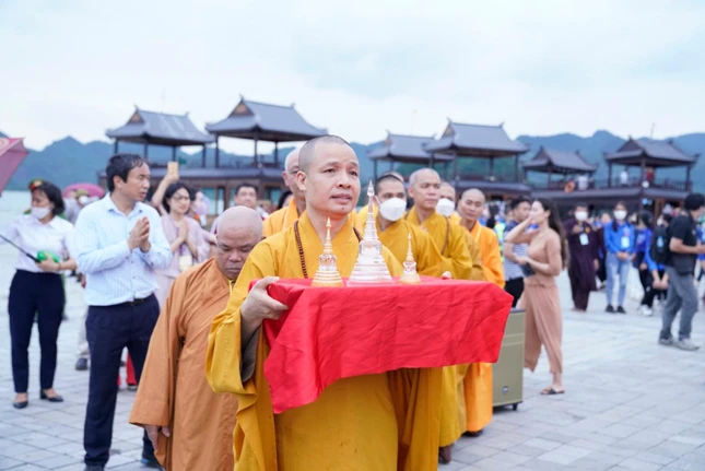 Trước đó, chiều cùng ngày, chùa Tam Chúc đã tổ chức diễu hành xe hoa và cung rước Xá-lợi Phật kính mừng Phật đản.