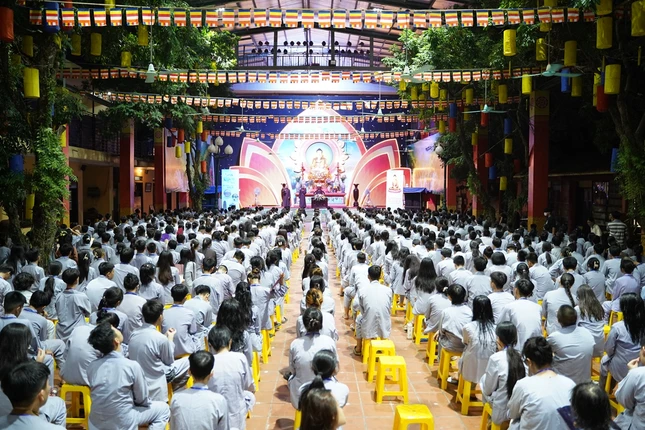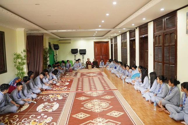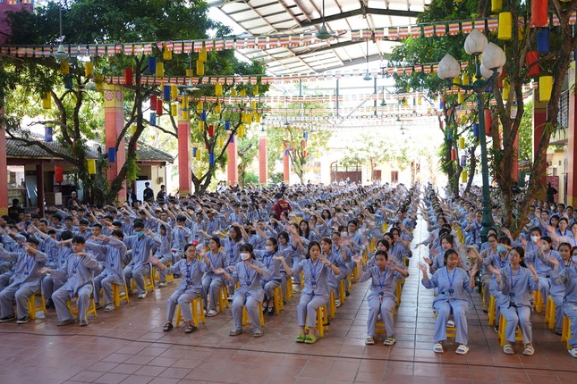Sau lễ khai mạc, Thượng tọa Thích Minh Quang đã có buổi chia sẻ Phật pháp với 550 bạn khóa sinh với chủ đề “Sống biết ơn”.