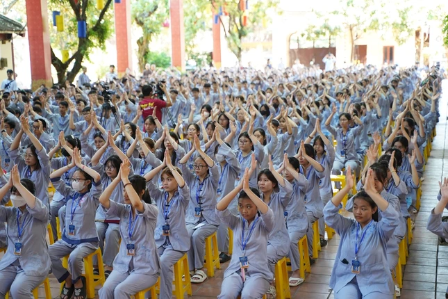 GNO - Nhằm tạo ra một sân chơi lành mạnh, bổ ích cho các bạn thanh thiếu niên trong dịp nghỉ hè, sáng 4-7, chùa Bằng - Linh Tiên tự (P.Hoàng Liệt, Q.Hoàng Mai, TP.Hà Nội) đã khai mạc khóa tu tuổi trẻ lần thứ XI năm 2023, chủ đề “Con về bên Phật”, với sự tham gia của 550 khóa sinh.