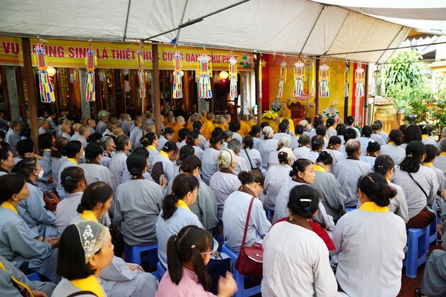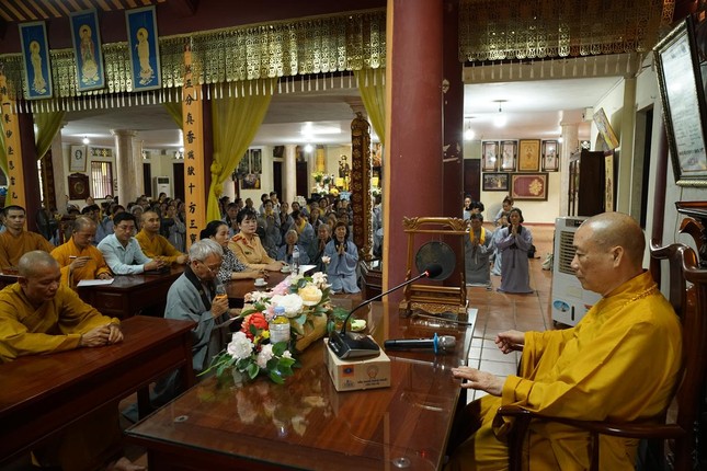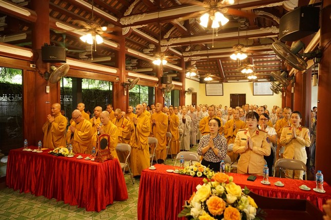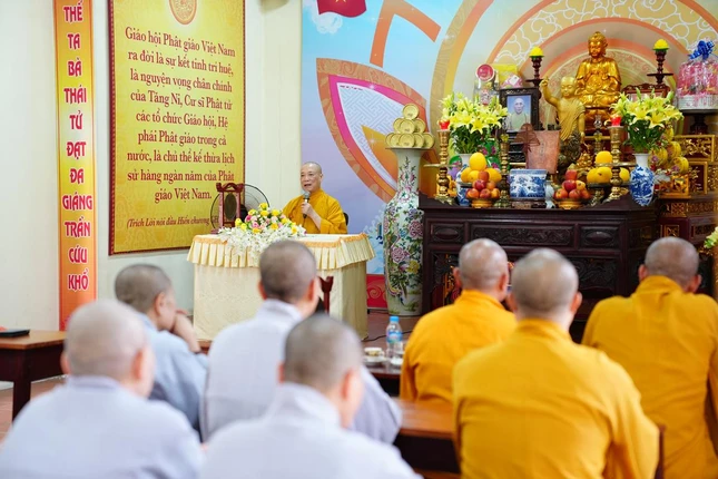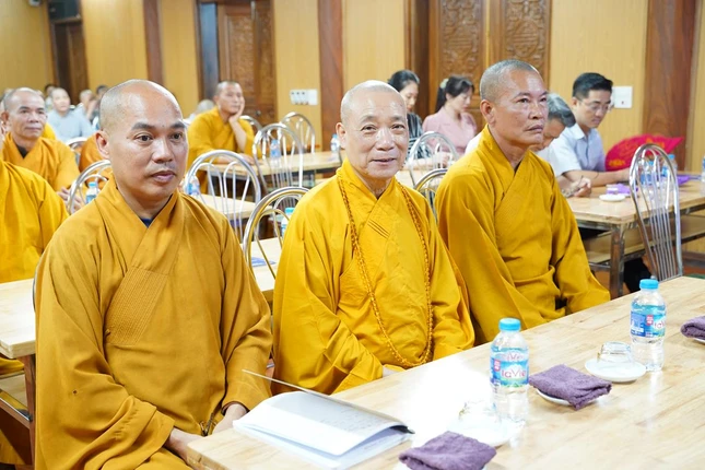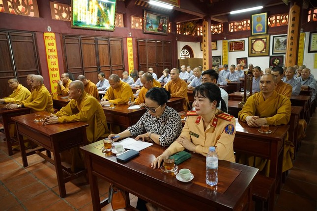 Ngoài ra, chư hành giả tại các hạ trường còn được lắng nghe bà Phạm Bảo Khánh, Phó ban Tôn giáo Thành phố và ông Dương Ngọc Kiên, Trưởng phòng Phật giáo - Ban Tôn giáo Thành phố phổ biến những quy định của pháp luật về việc quản lý tôn giáo, những vấn đề thời sự liên quan đến tôn giáo; hướng dẫn chư Tăng Ni hiểu đúng tinh thần nội dung trong Thông tư 04/2023/TT- BTC ngày 19-1-2023 của Bộ Tài chính; những nội dung mới trong Nghị định 95/2023/NĐ của Chính phủ ngày 29-12-2023 về việc cấp phép xây dựng các cơ sở tự viện, tổ chức tôn giáo trực thuộc; cấp đăng ký pháp nhân phi thương mại, cấp giấy chứng nhận quyền sử dụng đất, kê khai diện tích sử dụng đất của các cơ sở tự viện...