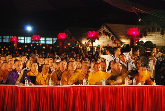 tôn đức trong HĐTS, BTS Thành hội PG Hà Nội, các đạo tràng, đại sứ của nhiều quốc gia… cùng khoảng 5.000 Tăng Ni, Phật tử.