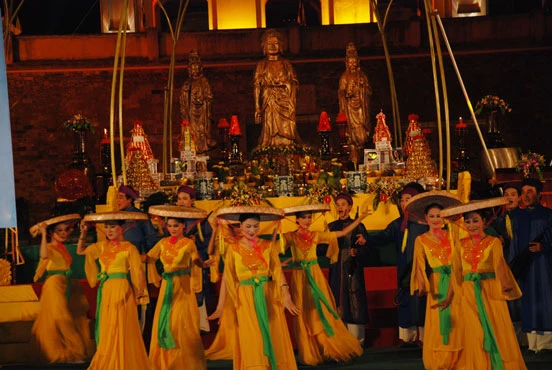 Hoàng thành Thăng Long (vừa được UNESCO công nhận là Di sản văn hóa thế giới) lung linh toả sáng trong đêm bế mạc Đại lễ Phật giáo