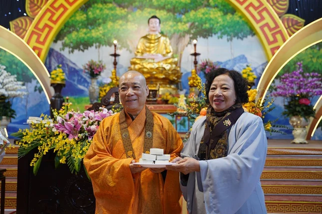 | Đại diện Đạo tràng Pháp Hoa Hà Nội dâng lời khánh tuế |