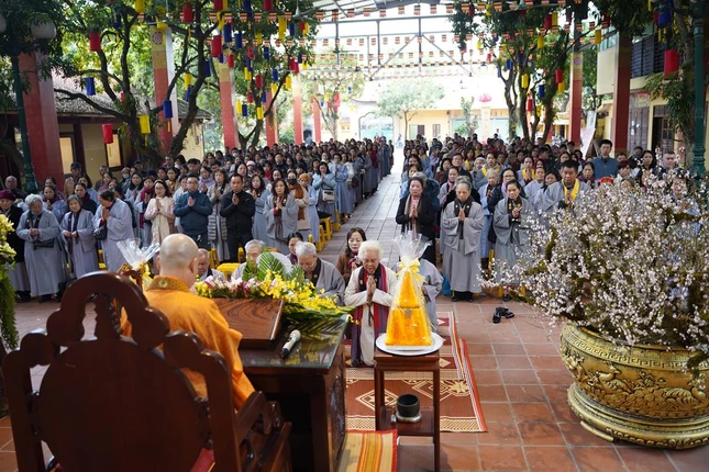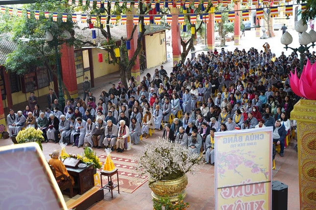 Theo đó, Hòa thượng trụ trì đã gặp mặt và có thời pháp thoại đầu năm dành cho Đạo tràng Pháp Hoa Hà Nội và người dân, Phật tử thập phương.