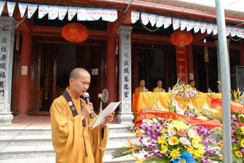 ĐĐ Thích Quảng Phúc - Trụ trì chùa Nguyệt xá đọc ý nghĩa Xá lợi Phật, thầy đã bày tỏ lòng tri ân công đức của gia đình chị Nguyễn Thị Ngọc Hoa đã cung tiến xá lợi Phật cho chùa Nguyễn Xá Dương Đình.
