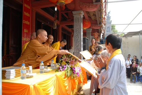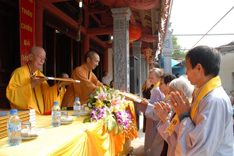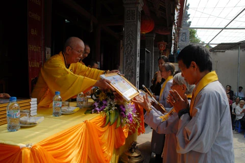Nhân dịp này chư tôn đức giáo phẩm đã trao bằng tuyên dương công đức cho các cá nhân của Đạo tràng Ngũ bách hành thiện "vì sự nghiệp hành thiện trợ giúp cúng dàng trên toàn quốc 10 năm".