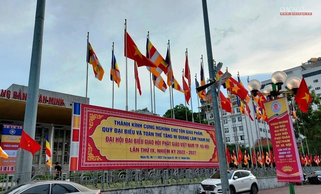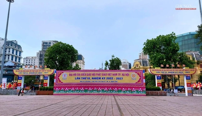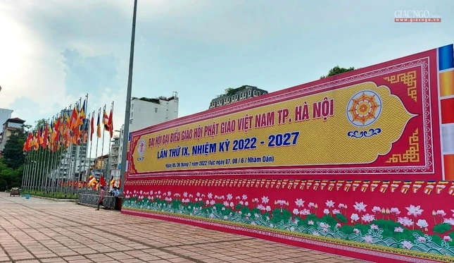 Không khí trang trí mừng Đại hội đại biểu Phật giáo TP.Hà Nội lần thứ IX, nhiệm kỳ 2022-2027 |