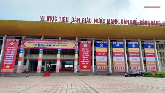 Cung Văn hóa Hữu nghị Việt - Xô được trang trí cho Đại hội đại biểu Phật giáo lần thứ IX của Thủ đô - Ảnh: Phúc Thịnh |