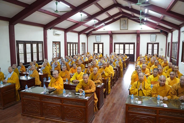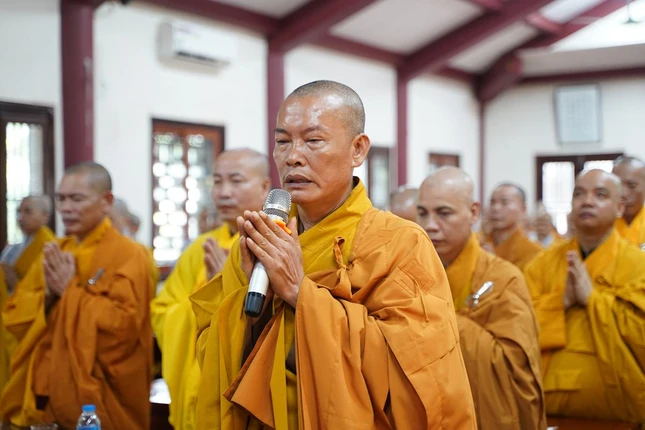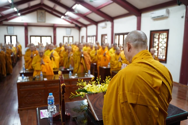 Tại đây, Thượng tọa Thích Đạo Phong, Ủy viên Hội đồng Trị sự, Phó Trưởng ban kiêm Chánh Thư ký Ban Trị sự TP.Hà Nội dâng lời tác bạch; Hòa thượng Thích Bảo Nghiêm có lời động viên toàn thể chư tôn đức Tăng Ni cố gắng nỗ lực tinh tiến, trau dồi Tam vô lậu học, trưởng dưỡng đạo tâm để trang nghiêm Giáo hội. Đồng thời, Hòa thượng mong chư vị giảng sư các trường hạ nghiên cứu kinh điển thật tốt để giảng dạy cho cả hàng xuất gia lẫn hàng Phật tử tại gia đều được hưởng lợi lạc pháp bảo.