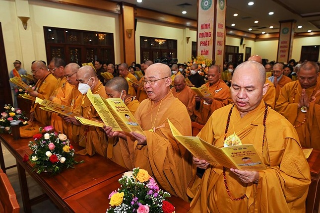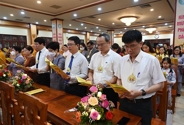 Tại buổi lễ, Hòa thượng Thích Thanh Nhiễu cung tuyên Thông điệp của Đức Quyền Pháp chủ. Hòa thượng Thích Gia Quang tuyên đọc Diễn văn của Chủ tịch Hội đồng Trị sự GHPGVN. Ông Ngô Sách Thực đọc thư chúc mừng Phật đản PL.2566 - DL.2022 của ông Đỗ Văn Chiến, Bí thư Trung ương Đảng, Chủ tịch Ủy ban Trung ương MTTQVN.