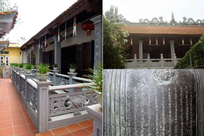 Chùa Cát Linh sau khi trùng tu đã hoàn chỉnh về mặt tổng thế. Ảnh toàn cảnh ngôi chùa và những dòng chữ ghi dấu tích ngôi chùa trên quả chuông trong chùa. (Ảnh:Quốc Đô)