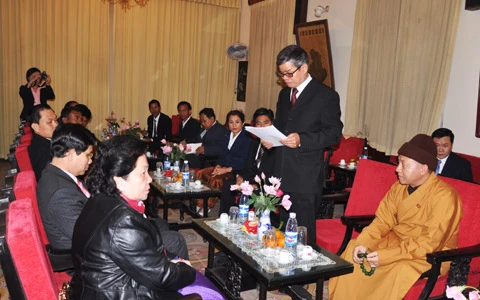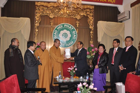 TT. Thích Thanh Nhiễu đã giới thiệu qua với đoàn về tổ chức của GHPGVN, trải qua 6 kỳ Đại hội, Phật giáo Việt Nam có trên 14.000 ngôi chùa và có khoảng 40.000 Tăng Ni tu sĩ trên cả nước. Hiện nay đã có 57 tỉnh thành trên 63 tỉnh thành trong cả nước đã thành lập Ban Trị sự. GH luôn đề cao và quan tâm vấn đề giáo dục, hiện nay có 4 học viện Phật giáo tại Hà Nội, Huế, TP. Hồ Chí Minh và Cần Thơ.