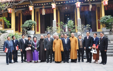 Tiếp đoàn có TT. Thích Thanh Nhiễu - Phó Chủ tịch HĐTS; TT. Thích Gia Quang - Phó Tổng Thư ký HĐTS kiêm Chánh Văn phòng I TƯGH; ĐĐ. Thích Đức Thiện - Uỷ viên Thư ký HĐTS - Phó Văn phòng I.