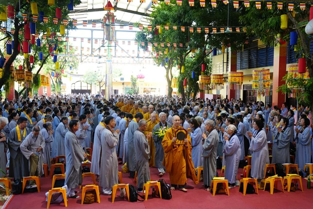 Kết thúc thời pháp thoại, dưới sự chủ lễ của chư Tăng bản tự, đại chúng tiếp tục trì tụng kinh Dược Sư, cầu nguyện thế giới hòa bình, Phật pháp xương minh, nhân dân an lạc.