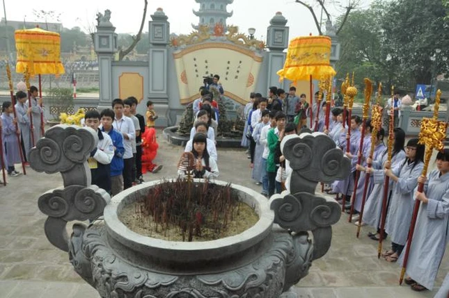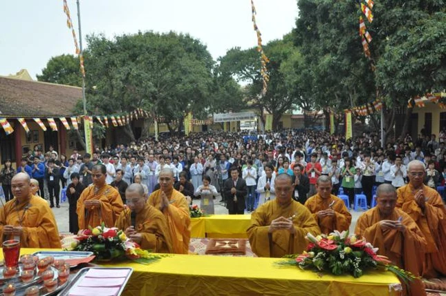 Tham dự buổi lễ còn có quý thầy cô giáo đến từ Trường THPT Việt Đức, Trường Chu Văn An và đông đảo các bậc phụ huynh học sinh, quý Phật tử và đại diện chính quyền sở tại. Buổi lễ bắt đầu bằng nghi thức dâng hương tưởng niệm bậc thầy sư phạm của muôn đời - Tiên triết Chu Văn An.