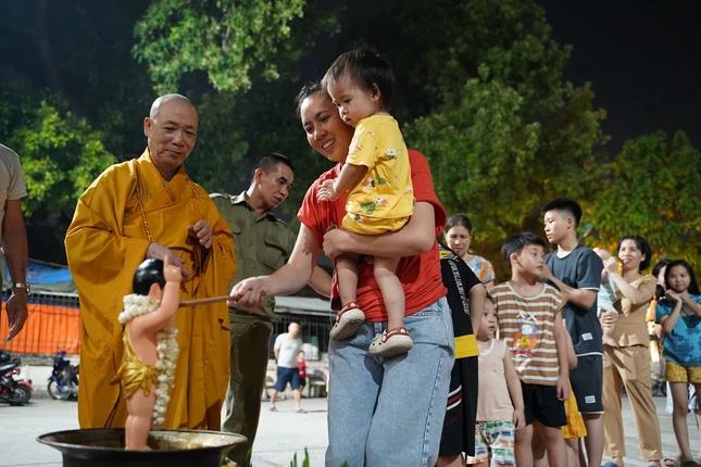 Hòa thượng trụ trì chùa Bằng tỉ mỉ hướng dẫn những em bé ánh mắt sáng ngời chắp tay cung kính cầm chiếc gáo dâng nước lên tôn tượng Đức Bản Sư trong niềm hân hoan. Nhà văn hóa Bằng B vô cùng đông vui nhộn nhịp kính mừng ngày Đức Thế Tôn thị hiện nơi đời, vì hạnh phúc cho số đông, vì an lạc cho chư Thiên và loài người.