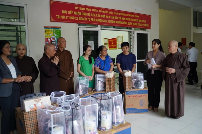 Tại UBND P.Khương Đình, Hòa thượng Thích Bảo Nghiêm đã thay mặt chư tôn đức Ban Trị sự có lời động viên, chia sẻ đến đại diện các gia đình là nạn nhân trong đám cháy vừa qua. Bên cạnh đó, chư tôn đức trao tặng 45 phần quà động viên tinh thần đến các gia đình đang chịu mất mát nặng nề.