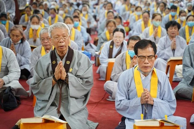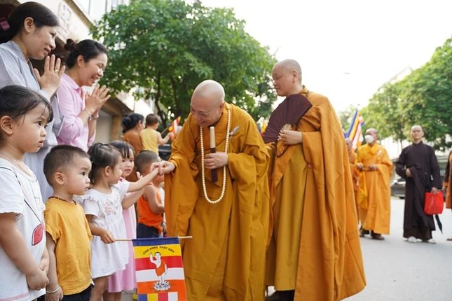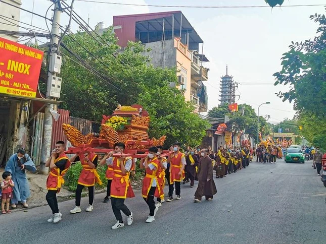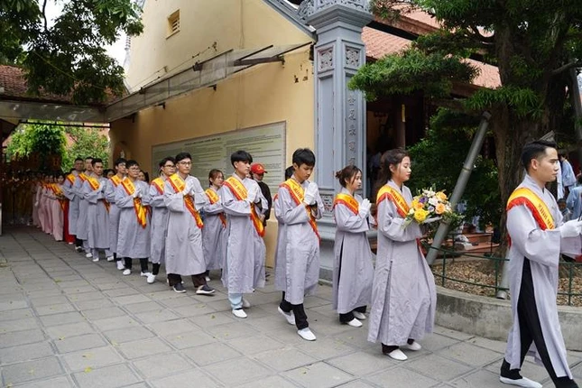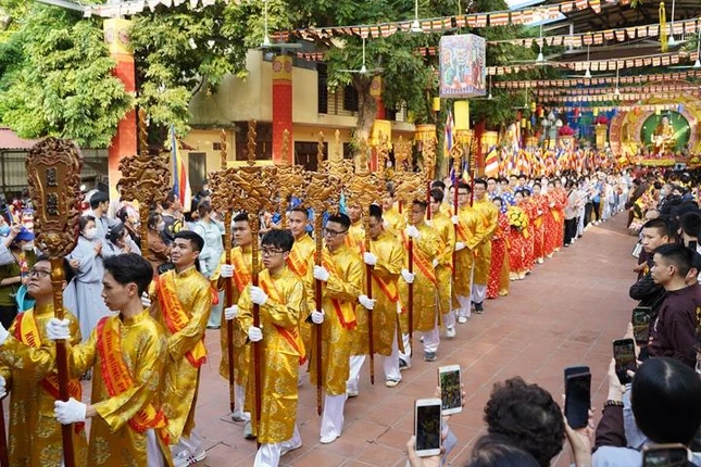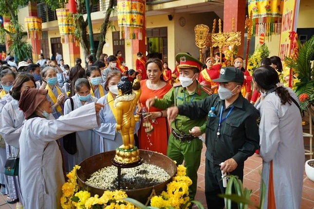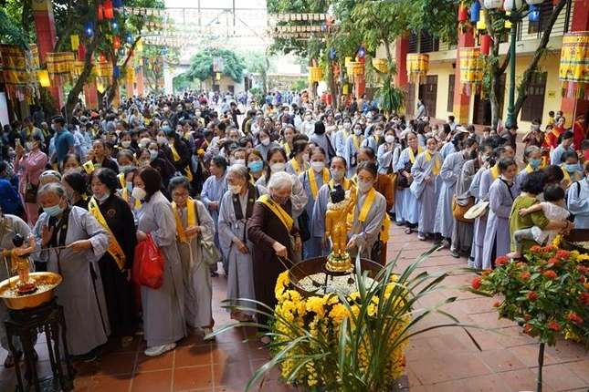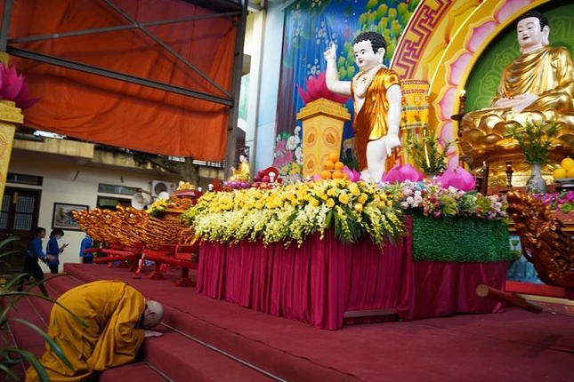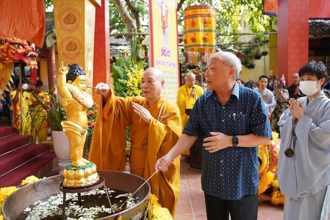 GNO - Tại chùa Bằng (Linh Tiên tự, phường Hoàng Liệt, quận Hoàng Mai, Hà Nội), chư Tăng trang nghiêm tổ chức khóa tu cho Phật tử, lễ rước Phật và Tắm Phật trong hoan hỷ Kính mừng Đại lễ Phật đản Phật lịch 2566.