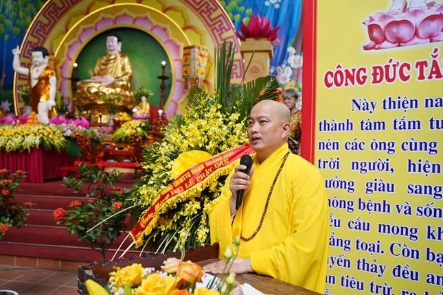 Trong khói hương trầm quyện tỏa, đại chúng lắng lòng thanh tịnh đón nghe Hòa thượng Thích Bảo Nghiêm cung tuyên Thông điệp Phật đản của Đức Quyền Pháp Chủ GHPGVN gửi Tăng Ni, cư sĩ Phật tử Việt Nam trong và ngoài nước, với lời sách tấn "người đệ tử Phật phải nêu cao đạo hạnh, nghiêm trì giới luật và tuân thủ pháp luật; đồng thời siêng năng thực hành giáo lý từ, bi, hỷ, xả để nuôi dưỡng thân tâm. Đó chính là nền tảng thực hiện trách nhiệm xã hội, xóa bỏ điều ác, hận thù, vô cảm trong xã hội. Đây cũng chính là tiền đề và là động lực để mỗi chúng ta thực hiện trách nhiệm xã hội của mình, cùng nhau xây dựng xã hội tốt đẹp hơn".