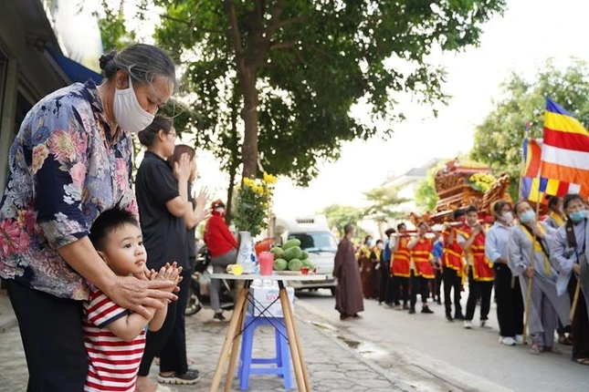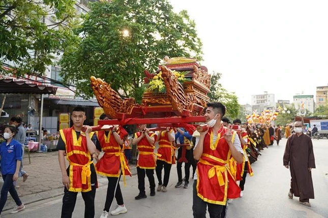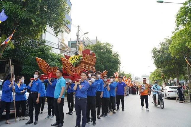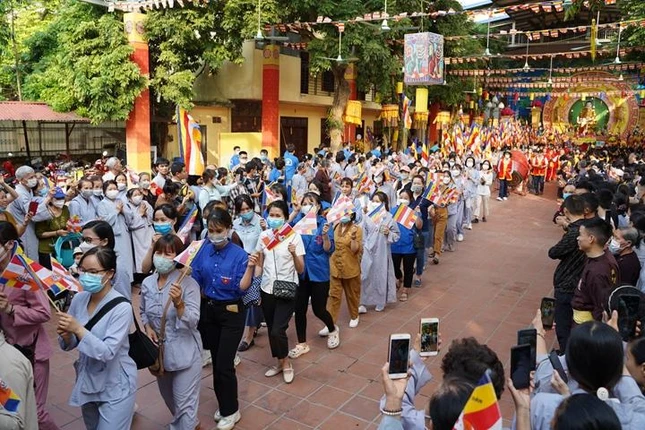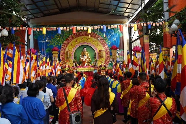 Trước đó, chư tôn đức và Phật tử đã rước lễ Vesak - Tam hợp, qua biểu tượng Đức Phật đản sinh, thành đạo và nhập diệt qua các đường phố, xóm phường… trong khi bà con thiết trí lễ cung đón hai bên đường, trong tinh thần thành kính và hoan hỷ kính mừng Phật đản.