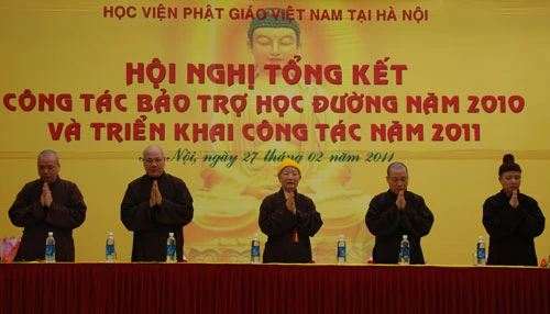 Tại buổi lễ, ĐĐ. Thích Minh Tiến báo cáo tổng kết hoạt động công tác bảo trợ Học đường năm 2010 và triển khai công tác năm 2011. Được biết quỹ bảo trợ học đường hoàn toàn do sự phát tâm công đức của các Phật tử, do vậy chỉ đủ duy trì giúp Tăng Ni sinh sinh hoạt đơn giản hàng ngày, chưa đủ khả năng để mở ra các công trình nghiên cứu khoa học và hợp tác quốc tế ...