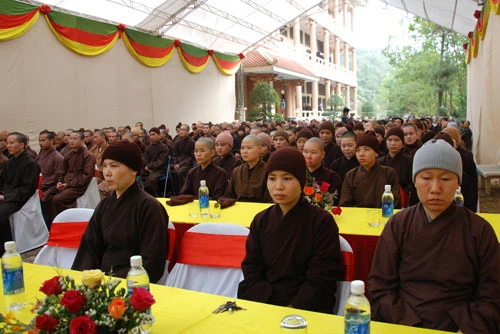 HT Thích Thanh Tứ - Phó Chủ tịch Thường trực HĐTS, Viện trưởng Học viện Phật giáo Việt Nam tại Hà Nội cùng chư tôn đức lãnh đạo Học viện, toàn thể Tăng Ni sinh và đông đảo các cá nhân, doanh nghiệp trong Ban bảo trợ học đường cùng dự.