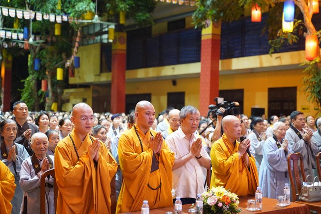 Chứng minh buổi lễ có Hòa thượng Thích Bảo Nghiêm, Trưởng ban Trị sự GHPGVN TP.Hà Nội, trụ trì chùa Bằng cùng chư Tăng bản tự.