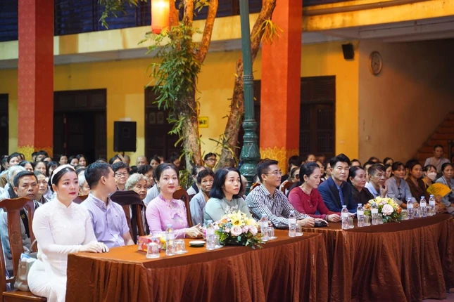 Buổi lễ còn có sự tham dự của GS.Nguyễn Anh Trí, Đại biểu Quốc hội khóa XV; bà Phạm Bảo Khánh, Phó Trưởng ban Tôn giáo TP.Hà Nội; ông Dương Ngọc Kiên, Trưởng phòng Phật giáo - Ban Tôn giáo TP.Hà Nội; cùng sự hiện diện của quý vị lãnh đạo đại diện cho các cơ quan chức năng, ban ngành TP.Hà Nội, địa phương sở tại,...