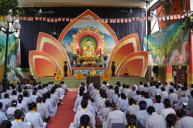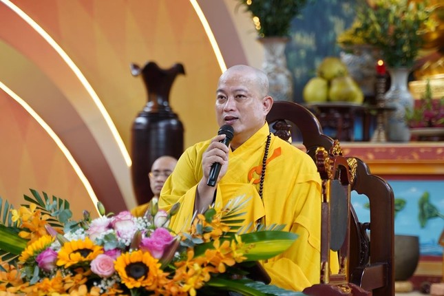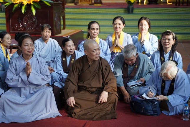 Bên cạnh đó, Hòa thượng giáo thọ cũng nhắc lại nguồn gốc cũng như ý chỉ kinh Pháp hoa, sách tấn đại chúng cần nỗ lực đoàn kết, cùng nhau tu tập, tôn trọng pháp môn tu, chuyển hóa thân tâm để cuộc sống được an lạc, hạnh phúc.
