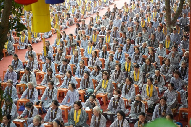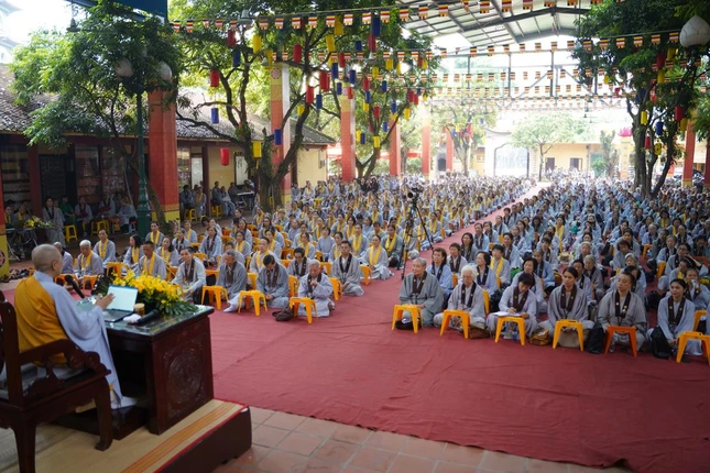 Sau đó, Ni sư Thích nữ Hương Nhũ, Ủy viên Thường trực Ban Hoằng pháp T.Ư, Phó trưởng Phân ban Ni giới T.Ư có thời pháp thoại tới toàn thể đại chúng về lợi ích của việc tu tập Bát Quan trai giới.