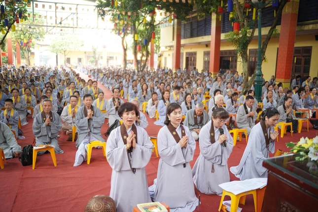 GNO - Tại chùa Bằng - Linh Tiên tự (Q.Hoàng Mai, TP.Hà Nội), ngày 21-4, diễn ra khóa tu Bát Quan trai với sự tham dự của đông đảo Phật tử gần xa.