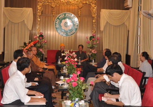 Tại buổi tiếp xúc, HT. Thích Thanh Tứ đã giới thiệu với đoàn về lịch sử đồng hành cùng dân tộc qua các thời kỳ của Phật giáo Việt Nam và sự lớn mạnh của Giáo hội hiện nay trong lòng dân tộc.