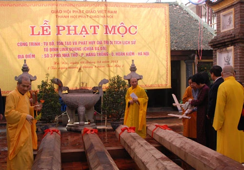 Chứng minh chủ trì buổi lễ có Thượng toạ Thích Chiếu Tạng - Phó BTS thành hội Phật giáo Hà Nội ,cùng chư tôn đức Thượng toạ BTS Thành hội Phật giáo Hà Nội , Tham dự buổi lễ có các vị lãnh đạo Công ty xây dựng công trình văn hoá ,Ngân hàng Việt nam ,Ngân hàng Bắc Á.