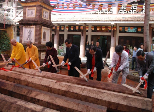 Tại buổi lễ ông Lê Quang Đường –phó tổng giám đốc công ty xây dựng công trình văn hoá phát biểu , ông Nguyễn đức Huy –phó chủ tịch Ngân hàng Việt nam ,phát biểu và trao tiền tài trợ là 10 tỷ đồng , bà Thái Hương -tổng giám đốc ngân hàng cổ phần Bắc Á ,trao tiền tài trợ công đức xây dựng trùng tu chùa số tiền là 13 tỷ đồng . Thượng toạ Thích Chiếu Tạng thay mặt BTS thành Hội Phật giáo Hà Nội bày tỏ lời cám ơn đến các nhà tài trợ và cho biết tổng kinh phí xây dựng dự kiến hơn 27 tỷ ,hiện nay đã có 2 đơn vị ủng hộ ,tiếp tục phải vận động Phật tử thập phương và các nhà hảo tâm với số tiền còn lại hơn 4 tỷ đồng