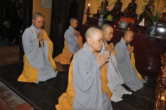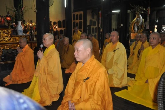 Tại buổi lễ Thượng tọa Thích Thanh Nhã – chánh Duy Na trường hạ lên Pháp tòa làm chủ sám buổi lễ tụng kinh tạ Pháp.