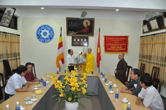 Nhân dịp này ông Lê Văn Cửu – Phó giám đốc sở nội vụ - Trưởng ban tôn giáo thành phố Hà Nội, ông Ngô Tiến Dụng – Phó chủ tịch UBMTTQ Tp Hà Nội cùng đại diện lãnh đạo các cơ quan đoàn thể chức năng đã tới tặng hoa chúc mừng Ban trị sự Thành hội Phật giáo Hà Nội.