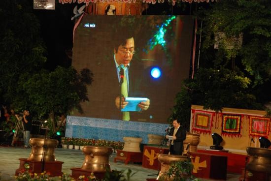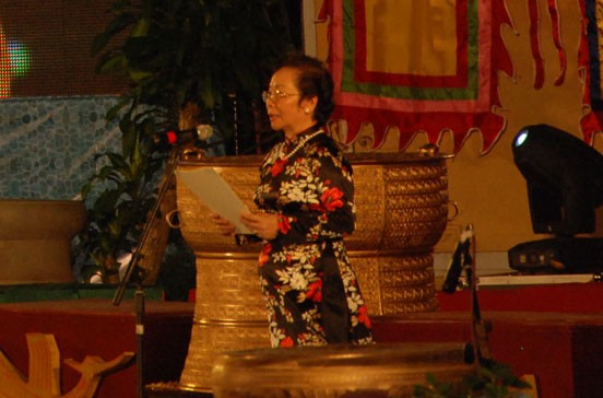 Bà Nguyễn Thị Doan phát biểu chúc mừng và đánh 3 hồi trống