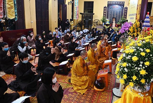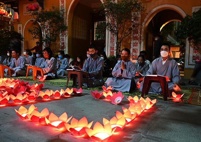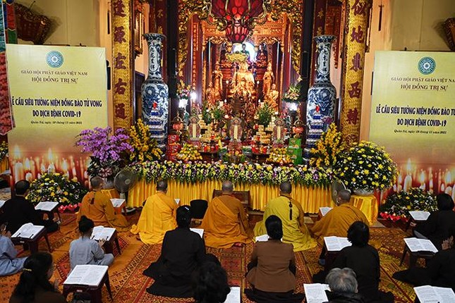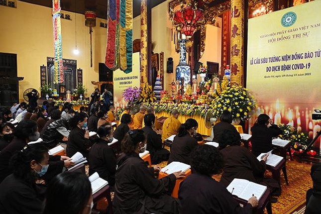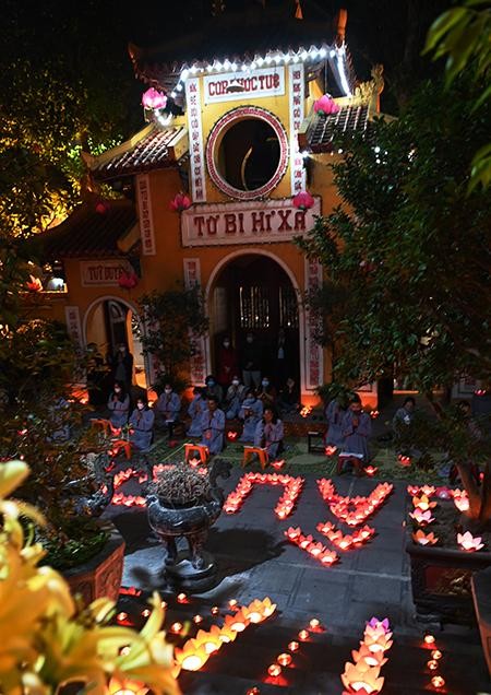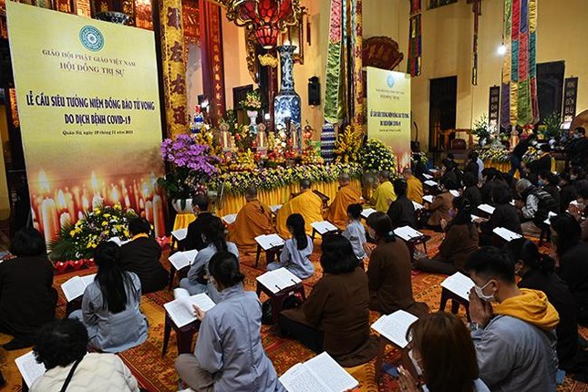 GNO - Buổi lễ đã diễn ra trang nghiêm, với thời tụng kinh, thỉnh chuông, thắp hoa đăng cầu nguyện đồng bào tử vong, các cán bộ, chiến sĩ hy sinh trong đại dịch Covid-19, vào tối nay 19-11, tại chùa Quán Sứ - Hà Nội, trụ sở của Trung ương GHPGVN.