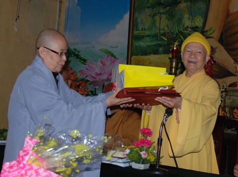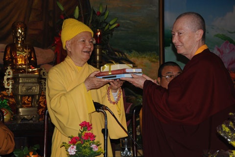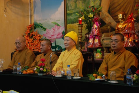 Tiếp đoàn có HT. Thích Thanh Tứ - Phó Chủ tịch Thường trực HĐTS, chư tôn đức Phó chủ tịch HĐTS: TT. Thích Thanh Nhiễu, TT. Thích Quảng Tùng - Trưởng ban Từ thiện Xã hội TƯGH, TT. Thích Gia Quang – Phó tổng thư ký kiêm Chánh văn phòng I TƯGH cùng chư tôn đức Tăng Ni Văn phòng I.