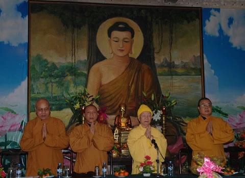 Ni trưởng Thích Nữ Huệ Hương – Đại diện đoàn Ni giới Phật giáo quốc tế phát biểu tri ân chư tôn đức GHPGVN và báo cáo việc tổ chức hội nghị Sakyadhita vừa qua tại TPHCM thành công tốt đẹp. Với chủ đề "Nữ giới Phật giáo lỗi lạc", toàn thể đại biểu dự Hội nghị có dịp nhìn lại những đóng góp của nữ giới Phật giáo nói chung và Ni giới nói riêng đối với Phật giáo và xã hội.