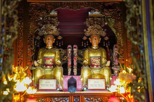 Trong không khí trang nghiêm, thủ nhang đền Hai Bà Trưng dâng lời chúc văn tưởng nhớ công lao to lớn của Hai Bà Trưng cùng anh linh các vị anh hùng đã hy sinh thân mình bảo vệ Tổ quốc.