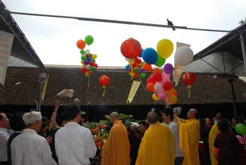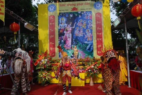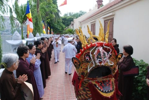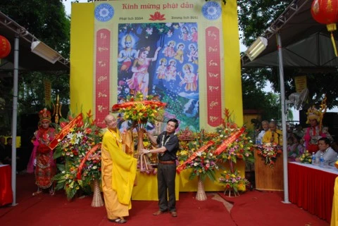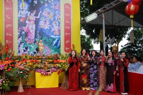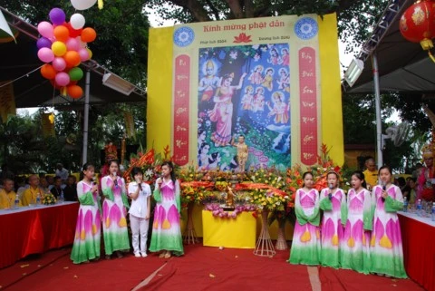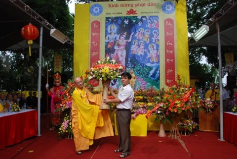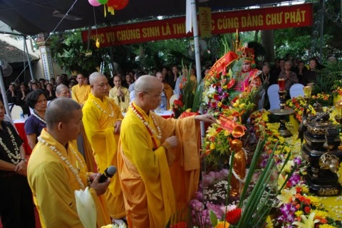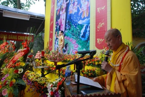 Trong không khí linh thiêng thành kính TT. Thích Thanh Nhã tuyên đọc Thông điệp Phật đản của Đức Pháp chủ. Tại buổi lễ toàn thể chư tôn đức Tăng Ni và các vị đại biểu đã được nghe diễn văn Đại lễ Phật đản và nghĩa Phật đản. Nhân dịp này, Ban đại diện Phật giáo quận Tây Hồ cùng lãnh đạo quận đã trao tặng quà cho các em học sinh nghèo vượt khó và các gia đình có hoàn cảnh khó khăn. Buổi lễ kết thúc chư tôn đức cùng đại diện các vị lãnh đạo niêm hương, tắm Phật và thả chim bồ câu cầu nguyện hoà bình.